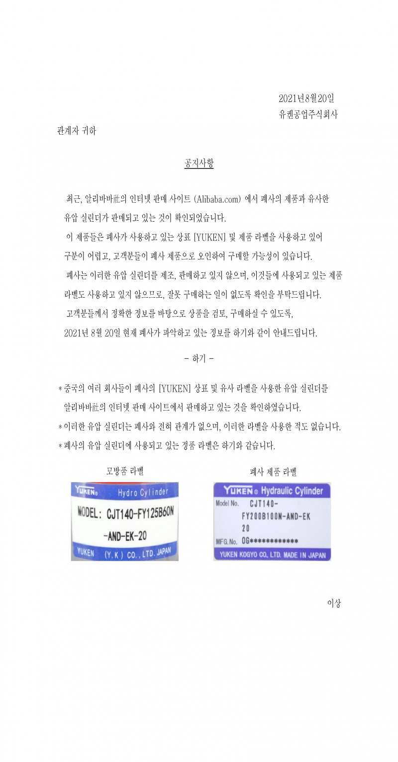 YUKEN 정품과 가품(유사상표) 식별 방법 안내